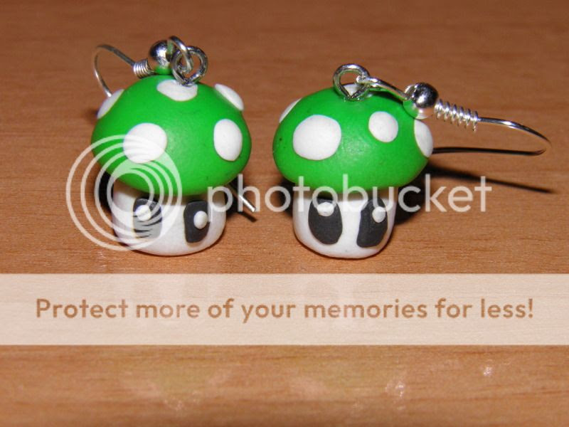 Bueno, pues aquí traigo unos pendientes recién sacados del horno, hechos en fimo, de las famosas setas del Mario Bros.